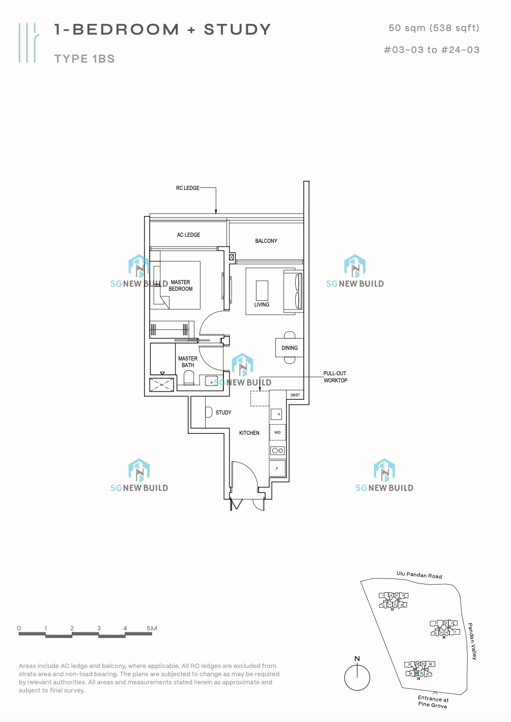 | 1-Bedroom + Study | 1BS | 50 | 538 | 22 | 4.2% |