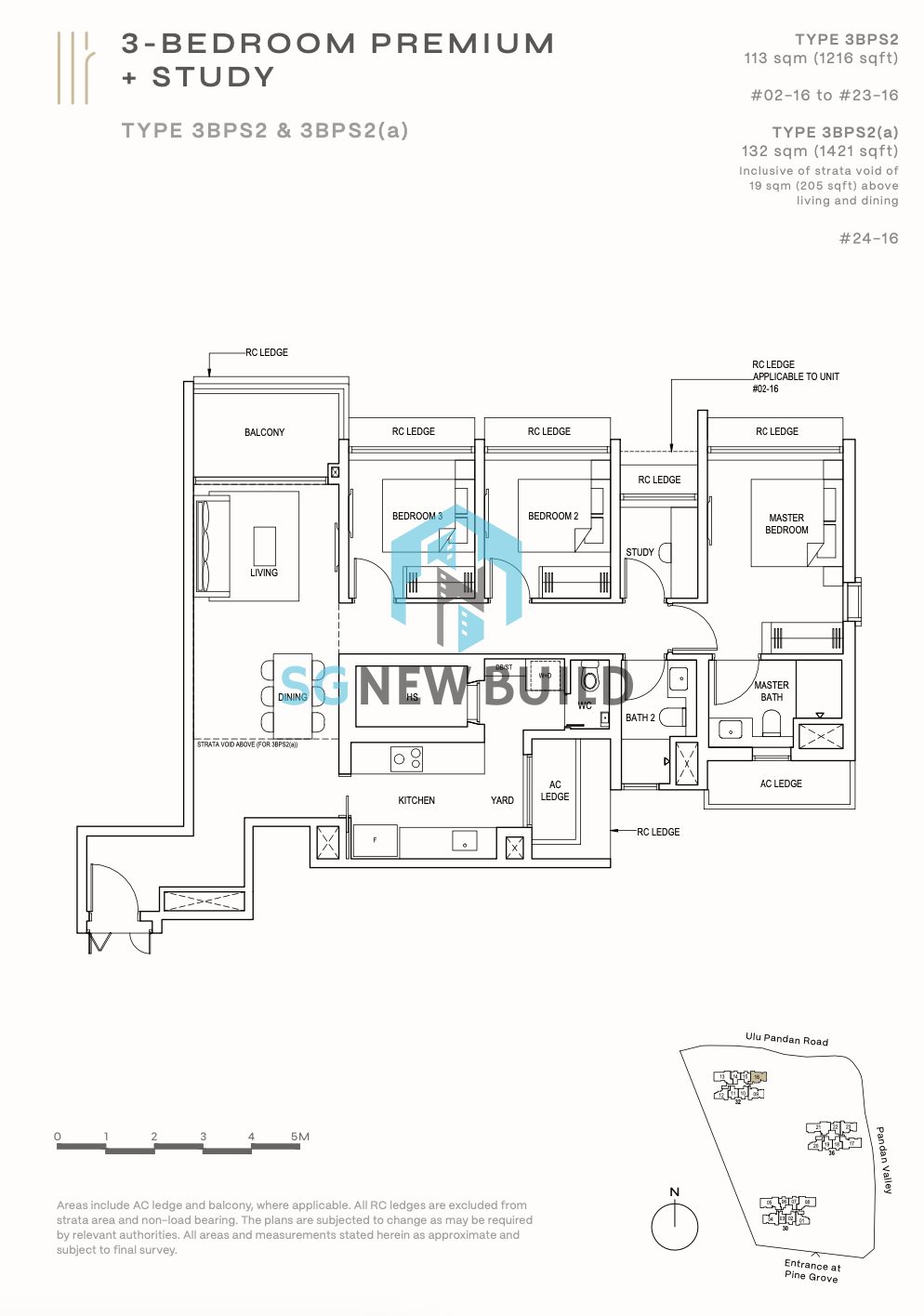 | 3-Bedroom Premium + Study | 3BPS1, 3BPS2 | 113 | 1,216 | 91 | |