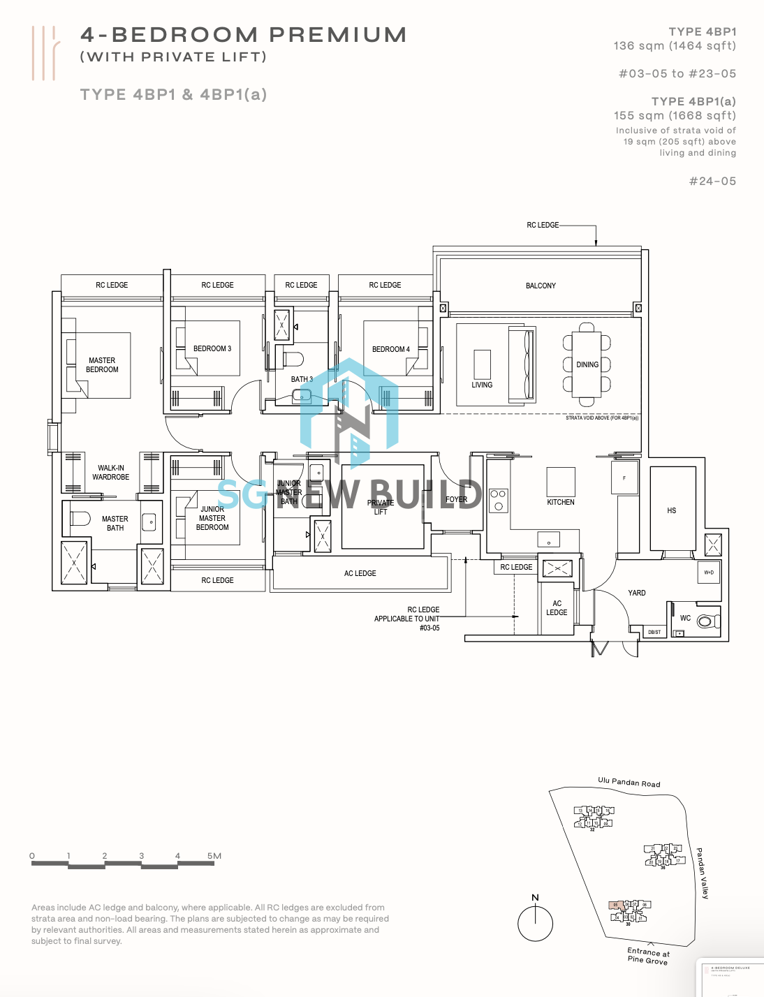 | 4-Bedroom Premium (with P/L) | 4BP1(a), 4BP2(a) | 155 | 1,668 | ||